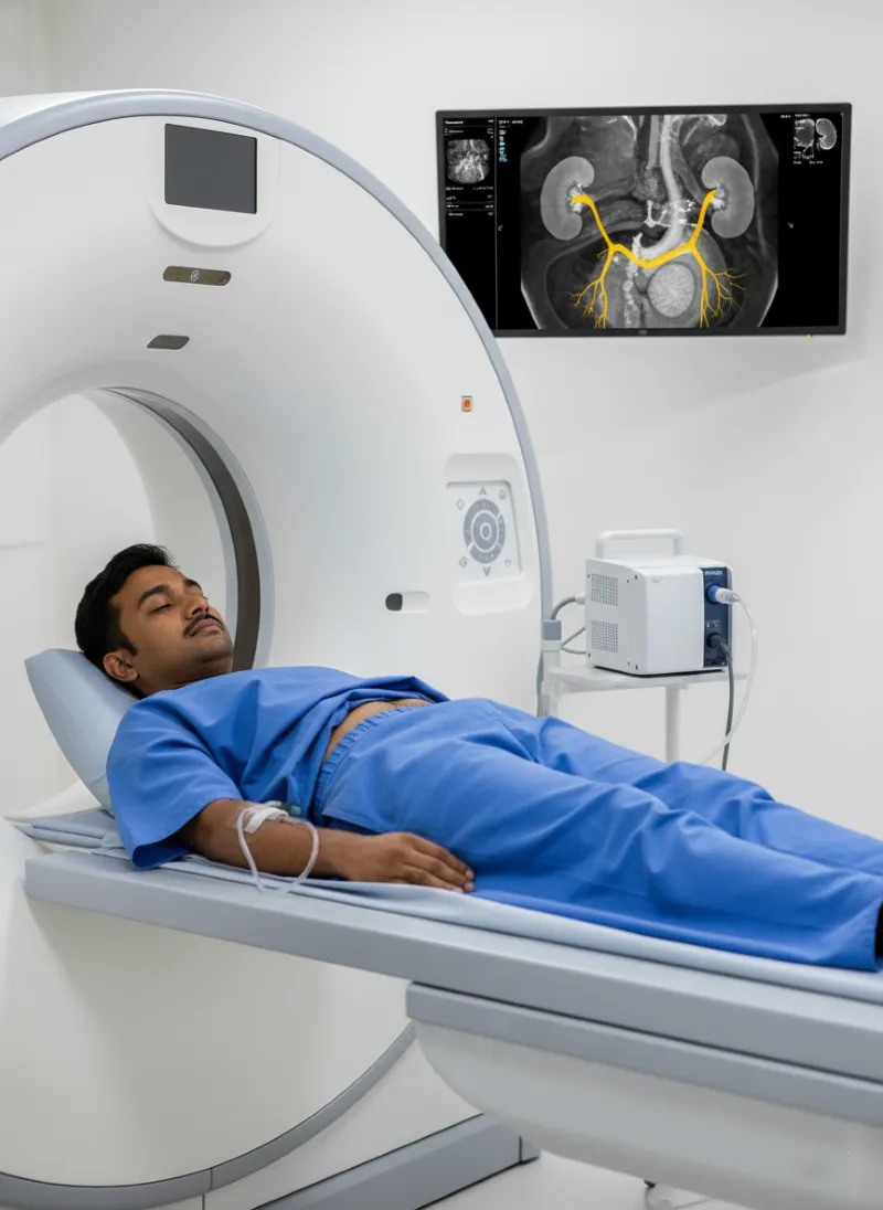 We guide you with scan preparation, safety checks, and any contrast CT requirements if needed.